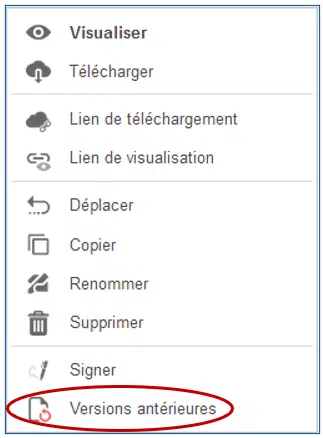 - Dans le menu déroulant qui apparaît, cliquer sur Versions antérieures