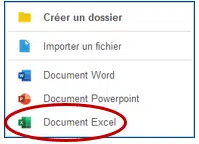 - Dans le menu déroulant qui apparaît, cliquer sur « Document Excel » pour réaliser un tableau :