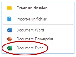 2. Dans le menu déroulant qui apparaît, cliquer sur « Document Excel » pour réaliser un tableau :