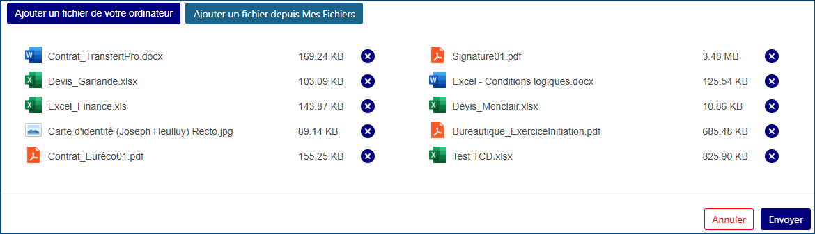 Cliquer sur la croix à droite du nom du fichier à retirer de l’envoi :