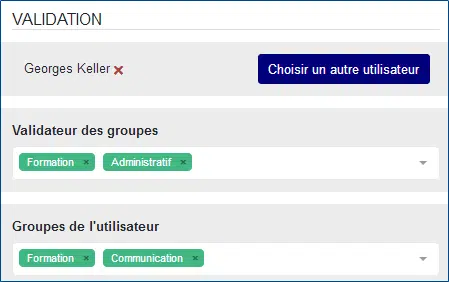 L’utilisateur peut également être validateur d’un ou de plusieurs groupes :