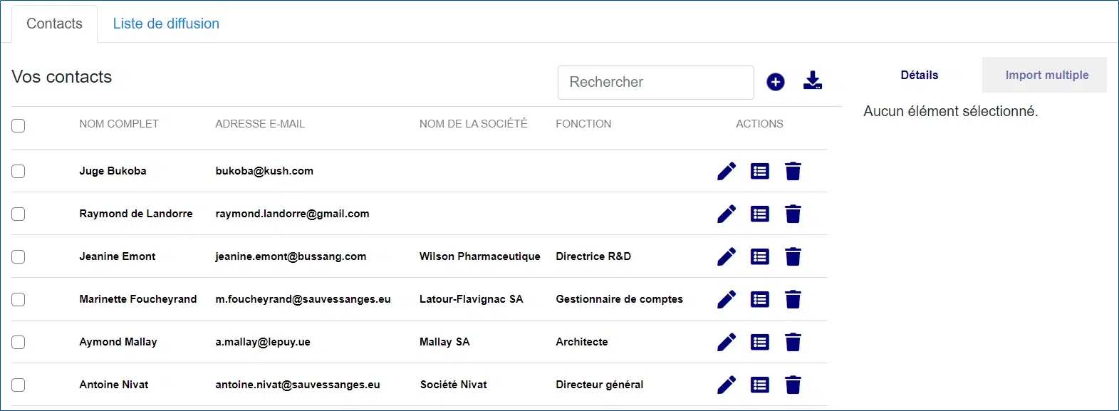 Actions : Cliquer sur le bouton Modifier pour modifier les coordonnées du contact