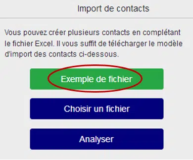 Cliquer sur le bouton Exemple de fichier pour télécharger un fichier Excel vide à remplir avec ses contacts :