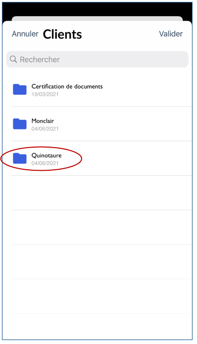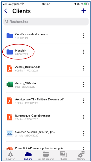 - Accéder au dossier voulu en tapant dessus :