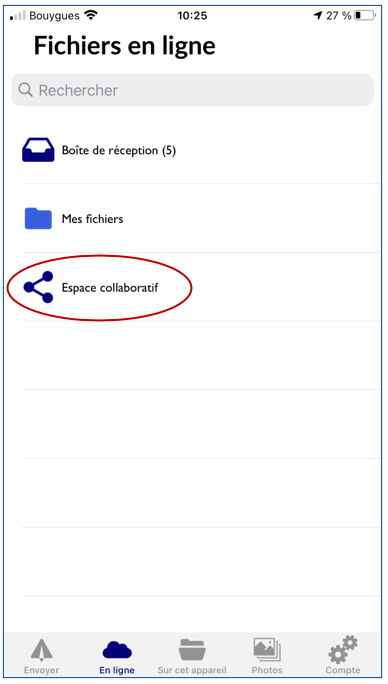 L’espace collaboratif contient tous les dossiers que des utilisateurs tiers ont partagés avec l’utilisateur du compte.