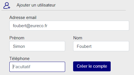 Accès à la création d’un nouvel utilisateur à partir d’un compte partenaire