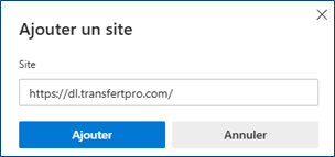 - Dans la case « Site », saisir l’adresse du site concerné (éventuellement, faire un copier-coller du lien de téléchargement du fichier) et cliquer sur le bouton Ajouter :