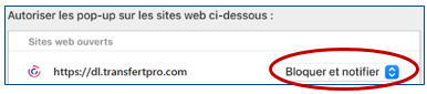 Le téléchargement de fichiers à partir de son espace TransfertPro peut être bloqué par son propre navigateur. Celui‑ci, pour des raisons de sécurité, bloque les fenêtres intrusives — les pop‑up en anglais —, voici comment les activer avec les principaux navigateurs.