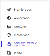 - Dans le volet de navigation, à gauche, cliquer sur « Confidentialité et sécurité » :